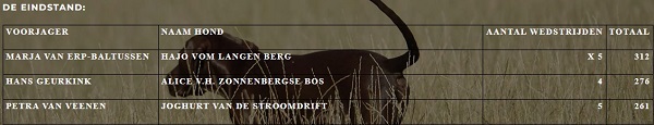 De NVDSK deelt jaarlijks een bokaal uit aan de 3 beste honden overall die hebben deelgenomen aan de Standaard Jachthonden Proeven. Met de mooie resultaten die Joghurt v.d. Stroomdrift afgelopen maanden werd hij 3e. Wat een prestatie van baas en hond.