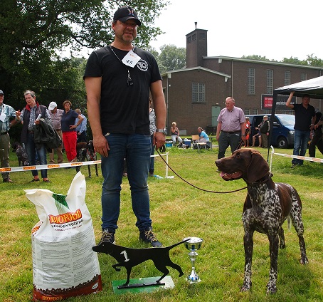 Tijdens de jaarlijkse Clubmatch voor Duitse Staande Kortharen, zaterdag 4 juni 2016, werd Flair v.d. Stroomdrift Beste Teef CAC uit een deelnemerslijst van31 teven.