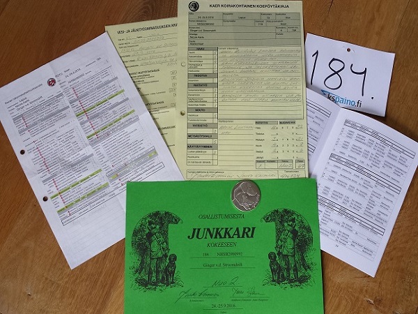 At the invitation of the owners of our offspring Everest v.d. Stroomdrift, Ginger participated at the Junkkari 2016 Lapua Finland on September 24th and 25th. During this annual event young pointing dogs try to get a cerificate. From a total of 290 participants, there were 88 German Shorthaired Pointers.
