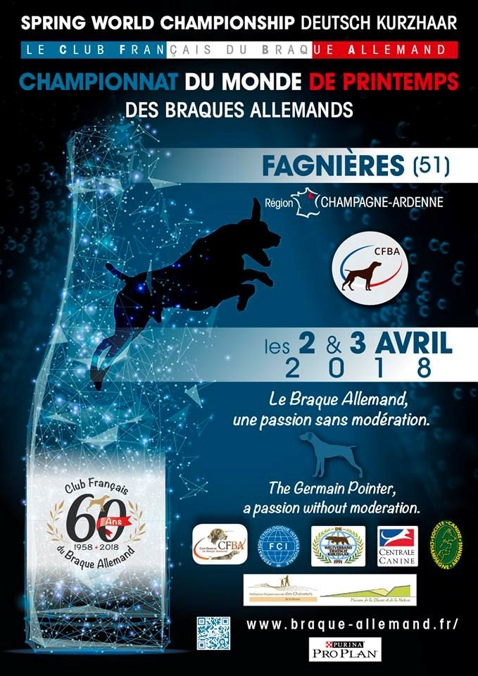 Op 2 en 3 april organiseerde de Franse Korthaar vereniging CFBA de Wereldkampioenschap voorjaar voor Duitse Staande Kortharen. In de grote velden van de Champagne-streek heeft Ginger v.d. Stroomdrift mooi werk laten zien. Helaas kon zij zich niet kwalificeren.