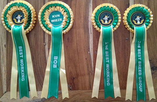Van keurmeester mevrouw A. Tarjan (HU) ontving ze het CAC BOB. Daarmee was deze showdag nog niet ten eind! Tijdens de erekeuringen werd ze verkozen tot Reserve Best in Show Werkhond (2e BIS WD). Om vervolgens 3e van de Rasgroep 7 te worden. Wat een mooie afsluiting van haar showcarrière.