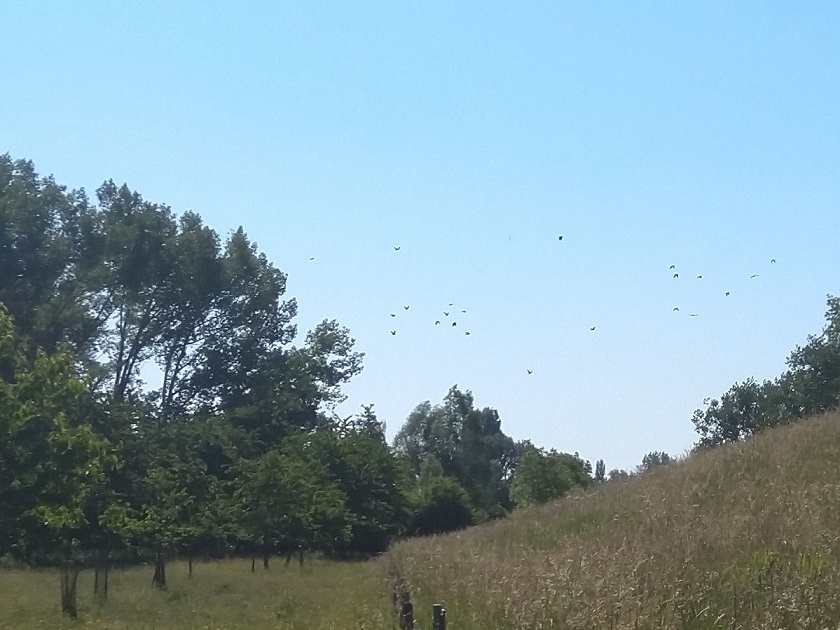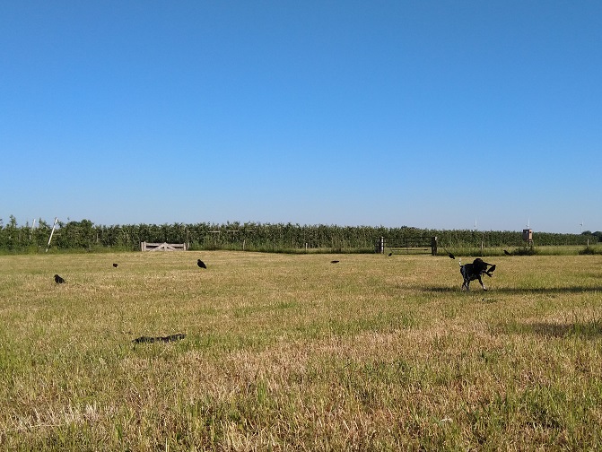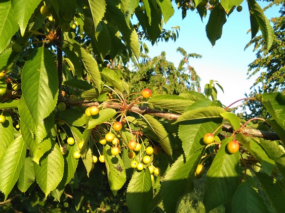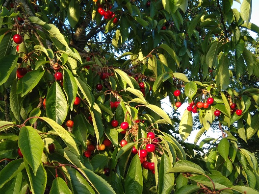 Het prachtige weer van de afgelopen weken heeft grote invloed op de kersen. Van heinde en ver komen de kraaien al een kijkje nemen (en kersje pikken) in de boomgaard. Het maakt ze eigenlijk niets uit dat de kersen nog niet helemaal rijp zijn.
